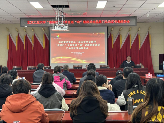 宣讲团师生分别以“解读二十届三中全会精神”“京畿红迹,大有可为”“强教育之基,筑强国之梦——以北京市教师轮岗制度为例”“传承清廉之风,续写廉洁故事”等为题,以“小切口”呈现“大主题”,通过通俗的语言、生动的案例、互动的方式,让全会精神入脑入心。宣讲报告内容丰富,思想深刻、深入浅出,既有理论阐释的深度,又有门头沟现实案例的温度,引起了与会人员的强烈共鸣。